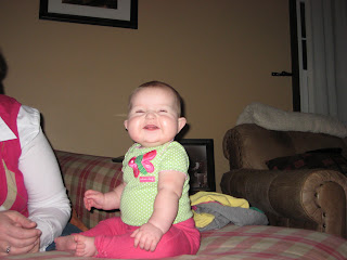 Well, as you can tell from the picture, Ava is starting to show some really big smiles. She gets really excited especially when she sees Shannon, Jack or me. She's still not much of a laugher, but she loves to smile. Shannon says that it seems like her face cannot contain her happiness! Of course, even after a long day or a bad day it is absolutely impossible to not smile when you see your daughter looking at you this way!